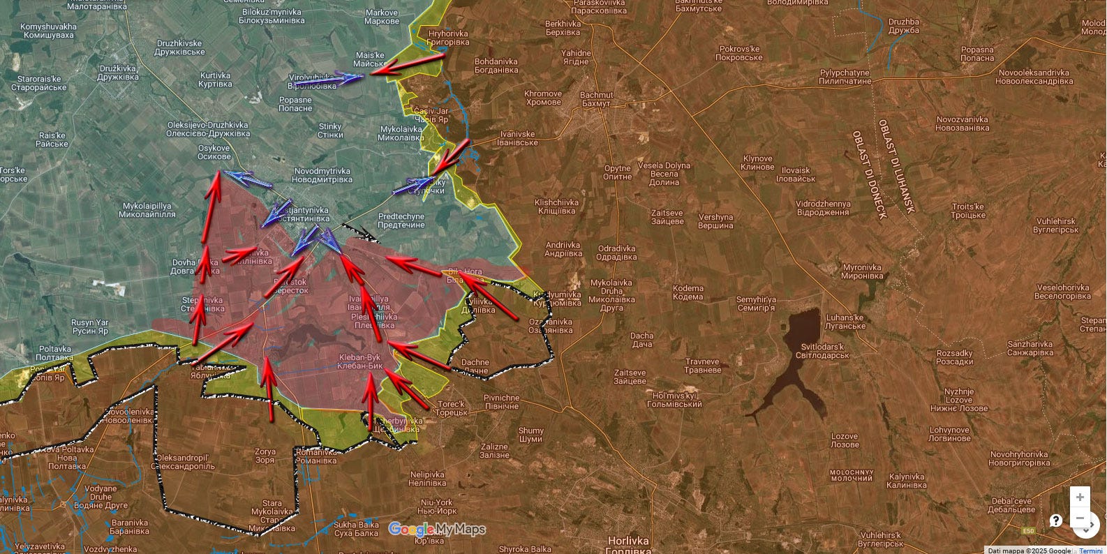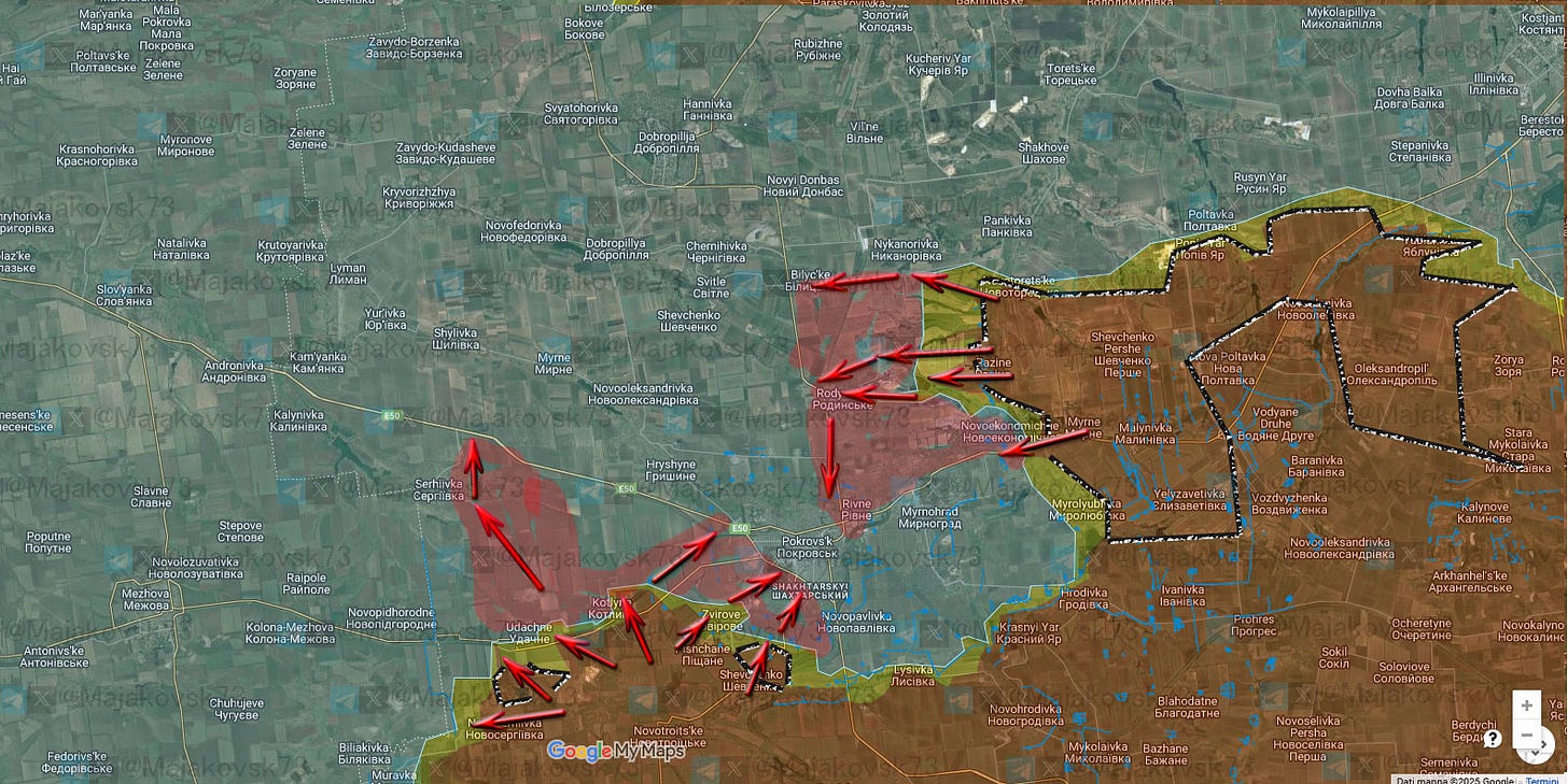 È possibile che i russi tentino, in parallelo, un attacco più a nord, in una zona più scoperta come quella di Bilytske, ma il quadro tattico generale appare piuttosto chiaro.