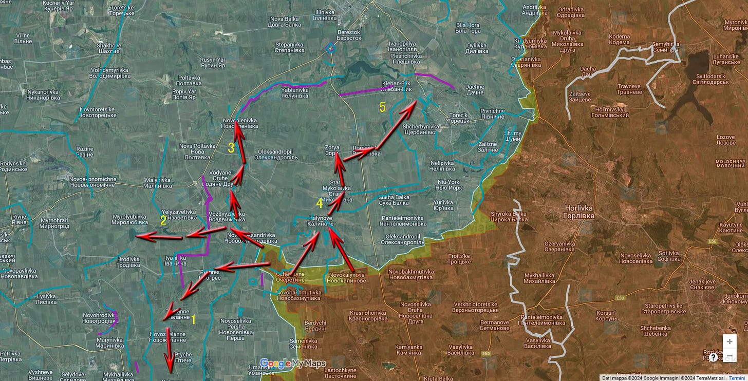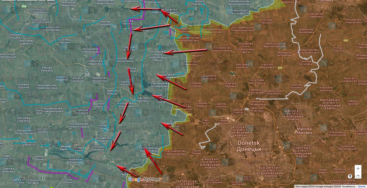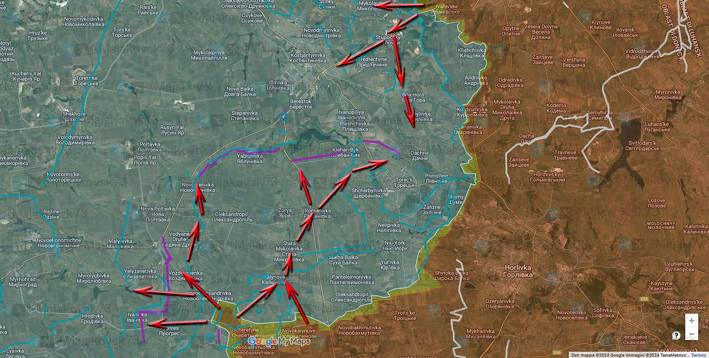 Anche la saldatura con il fronte più a sud di Krsanahorivka potrebbe sembrare una prospettiva interessante per la messa in sicurezza di Donetsk, creando una buffer zone davvero consistente per il futuro.